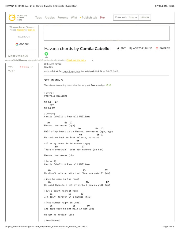 Lyre Chords And Notes Havana Camila Cabello Ft Young Thug